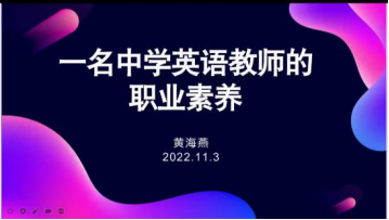 为提高英语师范生的专业素养,bv1946伟德国际师范生专业人才培养模式虚拟教研室邀请宜昌市中学英语高级教师和教研员黄海燕老师于2022年11月3日为全体师范生进行线上讲座。讲座的主题为:一名中学英语教师的职业素养。