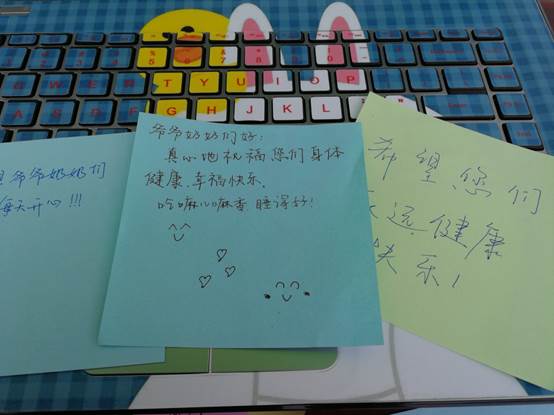 项目展示区是最具有外院特色的活动区域,包括松柏青常在,英乐之声,助力四六级等公益项目。活动现场,主讲人王瑛耐心地为参与者讲解外院志协的活动,加上活动视频的循环播放、活动照片的展示以及试听的结合,使参与者更加了解这些活动。参与者在听主讲人的讲解之外,还可以当场为老人写寄语、为小朋友设计单词卡片。活动负责人沈嘉乐介绍:“我们设置这些项目就是想拉近大学生和老人小孩自建的距离,这既有利于我们志愿活动的开展,也为其他人提供了传达志愿爱心的机会,与雷锋一条街的主题也很契合。”
