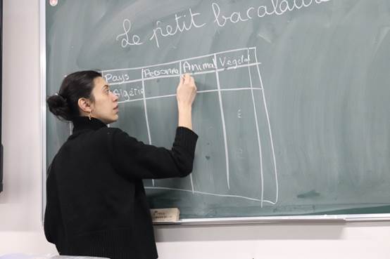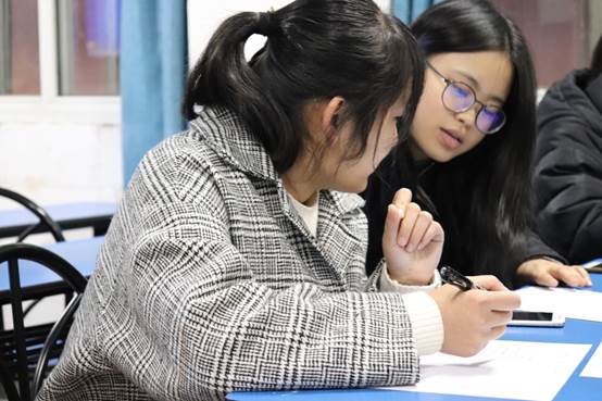 晚上7点,伴随着舒缓悠扬的音乐,活动拉开了帷幕。为了让参与其中的同学们更加认识到法语的魅力,更加了解法国文化,本次法语角中,外教老师以法语歌曲中的文化为主题,播放《J'ai demandé à la lune》(《问月》)、《Une chanson douce》(《一首温柔的歌》)、《Je Vole》(《我要飞翔》)等歌曲,并为同学们详细讲解了歌曲含义及背景。同学们逐渐被法国文化所吸引,渐渐地融入到活动中。学完歌曲,同学们在外教的带领下玩文字游戏,在遇到难题时相互讨论,空气中充斥着同学们的笑声。