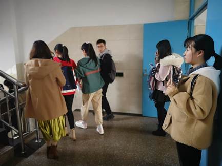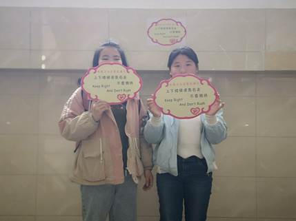据悉,教四楼栋课间人流量巨大,而楼道空间狭小,难免产生拥堵现象。为了改善此类现象,提高学生上课效率并降低意外事故发生的可能性,负责人姚淑敏在活动前期开展了一系列筹划,带领其他志愿者提前在教四的每个楼梯口贴上提示语“请同学们右下左上,不要拥挤”。下午学生下课期间,志愿者手持提示牌在教学楼每一个楼梯口站好岗位,引导同学们排好队有秩序地上下楼。当志愿者遇到有同学做出一些不规范的行为时,也有效地加以及时制止。在志愿者的努力下,同学们井然有序,楼道秩序也变得有条不紊。有来往的同学说:“非常感谢这些志愿者们,既保证了楼道安全,也给我们上课带来了许多便利。”