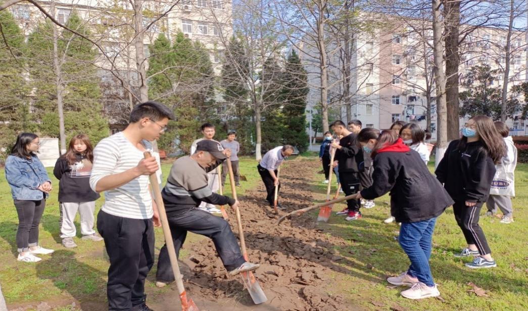 男生志愿者们在工作人员的带领下用铁锹松土,“裸露在外的泥土早已被过往的行人踩踏很紧实,松土看起来很简单,如果没有掌握铁锹插入泥土的角度,在实际操作会特别费力”,志愿者们在工作人员的指导下慢慢掌握了技巧,松土的效率越来越高。