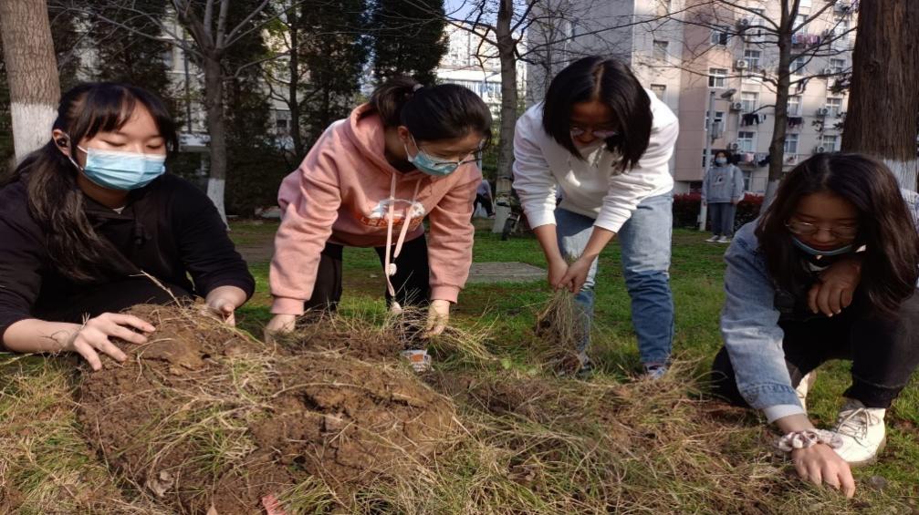 “以前自己不太会关注被我们踩在脚下的小草的感受,经过这次种草活动后,每次经过草皮我都会多看它们一眼,希望他们能够好好生长,也希望自己的劳动成果得到别人的尊重,我更希望有更多的同学加入种草行列”。20级英语专业贺莹涵参加完种草活动后,开始向身边的人“种草”。