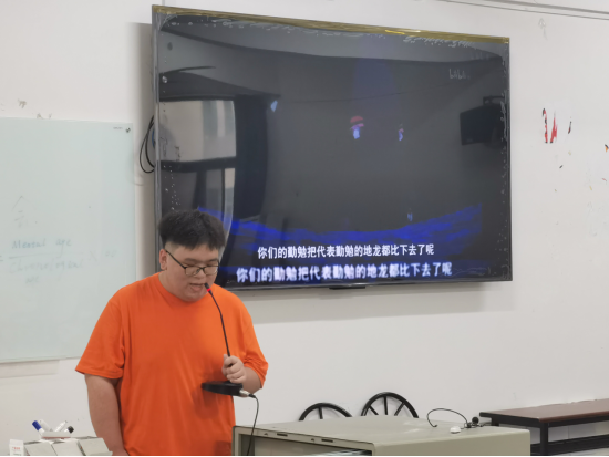 在本次大赛中,来自不同年级和专业的25名同学组建成11支参赛队伍,参赛作品聚焦日常生活中的笑点及生动有趣的动漫片段,选手们通过对人物情绪的灵活把控,以流利的口语与较强的情绪渲染能力诠释着一个又一个精彩的故事,使现场的观众们深刻体会到了语言的魅力。