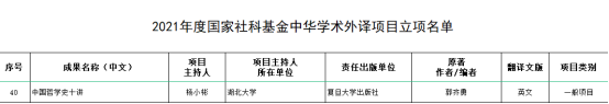 近日,2021年度国家社会科学基金中华学术外译项目立项名单公布,bv1946伟德国际杨小彬教授主持的《中国哲学史十讲》(英文版)入选。