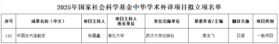 近日,全国哲学社会科学工作办公室公布了2025年国家社会科学基金中华学术外译项目拟立项名单,bv1946伟德国际张晶鑫副教授主持的《中国古代造船史》(日文版)入选。