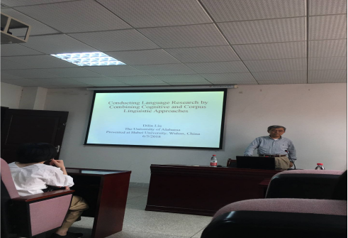 2018年6月5日(周二)下午三点,担任美国阿拉巴马大学英语系应用语言学和 TESOL课程的教授和协调人刘迪麟老师在人文逸夫楼A2014学术报告厅为我院师生做了题为“Conducting Language Research by Combining Cognitive and Corpus Linguistic Approaches”的学术讲座。bv1946伟德多位骨干教师和英语专业研究生到场聆听。