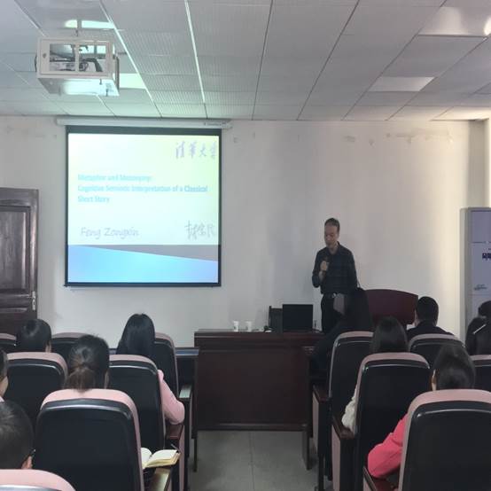 封教授此次演讲以《经典短篇小说的认知符号学解读》为题,以欧亨利的经典短片小说为主要素材,讲解如何运用转喻及隐喻解读其中的某些文学认知符号,介绍了领域内最新的研究成果和学术大家,推荐了一系列经典的文章与著作,扩宽了同学们在此研究领域学术视野。封教授首先谈到了David Crystal的文章,认为他的文章意在从认知文体学或诗学角度出发,用特殊的案例发掘转喻在文学作品中心理表达方面与隐喻的细微不同之处。同时,David Crystal也表达了这样一个观点,即,语言学家应该文艺批评家关心和关注的问题,而不是他们自己感兴趣且可以发挥的问题。封教授进一步提到,叙事学认为转喻的功能应该是“给读者一个可以用之前进的假设的运输工具”并且也是“一种使得读者去体会意义的刺激形式“。根据Lakoff的《我们赖以生存的隐喻》,封教授认为,“隐喻不仅是组成语言的一种形式,也展示了我们组织自身想法和行为的方式。
