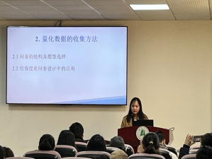吴华珊老师详细讲解了量化研究的基本框架,包括什么是定量研究、如何提出研究问题等。吴老师基于SPSS的实用操作示例,具体展示了量化研究的数据收集与分析方法,重点阐述了如何运用方差分析、相关性分析、回归分析等方法在学术写作中呈现结果。整场讲座中,吴老师条理清晰,娓娓道来,分享了许多关于量化研究与分析的实用方法,并积极回答了师生的提问。