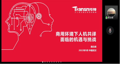 9月6日,传神公司殷白恩老师线上讲学,为学院2022级翻译专业新生带来了一场以人机共译在商用环境下的应用为主题的讲座。本次讲座通过腾讯会议举行,由bv1946伟德殷燕教授主持。