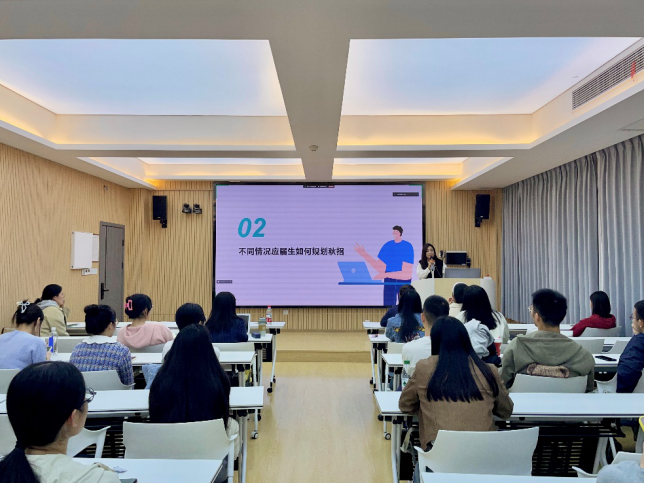 11月5日晚18:30,就业指导中心祝晓静老师应学院邀请,为同学们开展了题为“2025届秋招观察及秋招务实备战技巧”的就业指导讲座。本次讲座在逸夫人文楼 A3014举行,由辅导员孙媛媛主持。