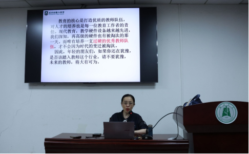 这次讲座的主题是“以英语教师视角解读四有好教师”。首先杨老师指出,“四有好教师”不仅是教师职业的基本标准,更是教师终身发展的方向指引;其次,杨老师针对“四有”即有理想信念、有道德情操、有扎实学识和有仁爱之心这四个方面分别进行了详细阐述,并结合杨老师从教的具体实例提供了一些宝贵的建议,包括如何处理同事、师生、教师和家长之间的关系。杨老师特别强调,在核心素养导向下,班主任工作仍是教师专业成长的重要平台。她指出,“班主任工作是道德情操的具体体现,是教育教学的重要表现”,并分享了多个班级管理及家校沟通的实际案例,为同学们提供了可借鉴的实践策略。