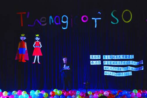 演出开始前,林书记上台致辞。他对SOMA获五星社团表示祝贺,肯定了SOMA对促进我校学子了解西方文化做出的努力。林书记一口流利的英语也给观众带来了惊喜,同时带动了现场的气氛。