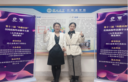 2022年11月6日,第十三届“外教社杯”全国高校外语教学大赛(大学英语组)湖北赛区决赛圆满落幕。经过激烈角逐,我校bv1946伟德的龚佳玉老师、陶然老师双双斩获桂冠,分获湖北赛区决赛综合组和视听说组特等奖,将代表湖北省参加全国总决赛。