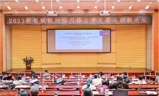 陶涛介绍了学院办学基本情况,并结合新一代人工智能技术快速发展给传统的应用语言学研究范式和人才培养模式带来了全新的挑战阐明了举办本次论坛的目的和意义。她希望本次论坛能让与会学者在数智赋能的应用语言学发展前沿问题交流中碰撞思维、在助推人工智能与应用语言学的融合发展上互为启发,实现共谋、共享、共赢。