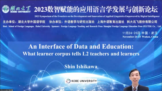 神户大学Shin’ichiro Ishikawa教授以“An interface of data and education: What learner corpus tells L2 teachers and learners”为题,指出第二语言教学存在的困难之处,即其往往依赖于教师个人难以推广的感觉与经验,而缺少解决亚洲英语学习者普遍问题的方针;在此基础上提出了只有收集和分析大量数据才能识别学习者普遍问题的观点。介绍了针对亚洲英语学习者建立国际语料库网络的ICNALE计划,基于大数据统计分析了来自中日的英语学习者在英语使用上的区别,针对亚洲学习者普遍存在的不足之处提供了相对的改进方案。说明了人工智能对LCR的影响和相关对策。