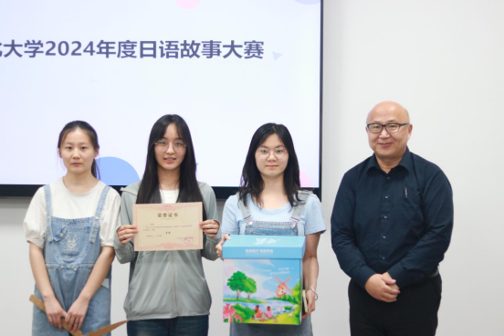 经过评审,最终《奇葩理发店》小组经过激烈的角逐获得一等奖。评委老师向获奖同学颁发了由日语系提供的奖品。