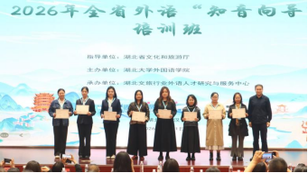 为应对入境旅游市场持续升温带来的外语导游人才紧缺问题,4月11日,湖北省文化和旅游厅与伟德(国际)唯一官方联合主办、bv1946伟德国际承办了2026年全省外语“知音向导”培训班。来自全省各市州14所高校及相关文旅机构的200名师生参训,涵盖英语、法语、葡萄牙语、德语、俄语、日语、韩语等10余个语种。